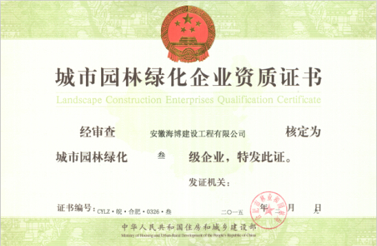 2015年2月17日,值此歲末,新春佳節(jié)之際,又一好消息傳來,我公司申報的“城市園林綠化叁級資質(zhì)”獲批。 我公司自成立以來,一直以施工板塊為主營發(fā)展方向,當然在此領(lǐng)域也已然取得了...