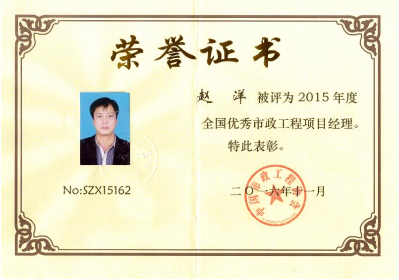 昨日,安徽省市政工程協(xié)會九屆三次理事會議在廬江召開,我公司趙洋同志榮獲“2015年度全國優(yōu)秀市政工程項(xiàng)目經(jīng)理”稱號,全省僅有十二位同志獲得此項(xiàng)殊榮。會上,省協(xié)會主要領(lǐng)導(dǎo)對獲獎(jiǎng)?wù)哳C發(fā)了榮譽(yù)證書。