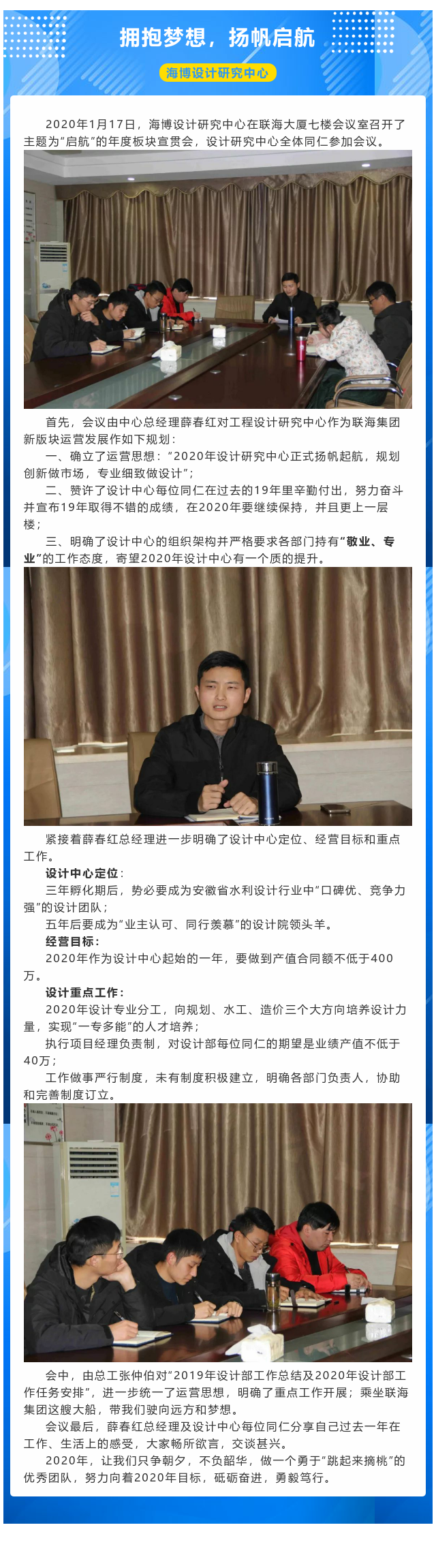 擁抱夢想,揚帆啟航——設計研究中心2020年重點工作會議