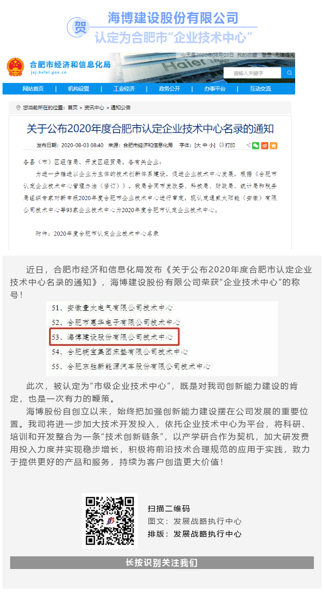 賀海博股份獲“企業(yè)技術(shù)中心”認(rèn)定